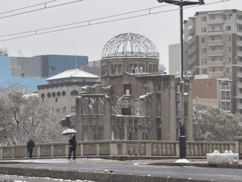 雪景色の原爆ドーム