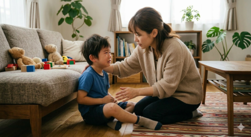お母さんがお腹をさすってくれた